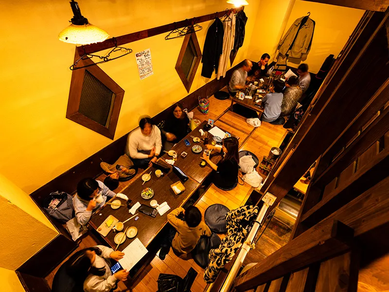 (50年受け継がれるピリ辛な秘伝のタレと一緒にどうぞ)